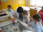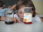Aber dann ging es schon los mit unseren Experimenten. Am Vormittag haben wir mit der Züchtung unserer Kristalle begonnen - wir lassen ihnen bis zum Ende der Woche Zeit zum Wachsen.