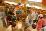 Heute waren wir einmal nicht im Wald. Am Vormittag haben uns die Chemiker allerhand Experimente mit Trockeneis nähergebracht. Das "Highlight" war eine explodierende PET-Flasche.