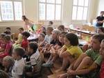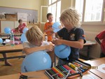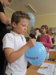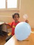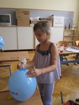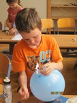 Heute mussten die Forscherdetektive die schwierigste Prüfung der Woche bestehen. Ein selbst gebasteltes Windrad wurde auf einem aufgeblasenen Luftballon montiert. Mit einer Stecknadel wurde nun ein Loch in den Ballon gestochen. Die ausweichende Luft sollte das Windrad antreiben. Der Luftballon durfte dabei jedoch nicht zerplatzen. Stolz präsentierten und erklärten die Kinder am Nachmittag alle Experimente ihren Eltern.